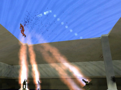 The Trap-Making system - AKA 'Strategery' The strategery system relies primarily on two objects: a source and destination. Here a tripmine can act as a source. When the beam from the tripmine is broken, the tripmine sends a message to the destination object. If the destination is a turret, then when the beam is tripped, the turret focuses on the player who tripped it and begins shooting. Thus, it's essential that the tripmine is placed so the enemy will break the beam! Sources will include tripmines, proximity mines, and a variety of others. Destinations include various types of turrets (bullet, flame, etc), vortex inducing bombs, teleporters, alarms, and map-based (mappers can make traps that users trigger). With careful placement of trap elements, it's possible to create intricate traps. Some players may enjoy simply taking turns creating and trying to get past them!
